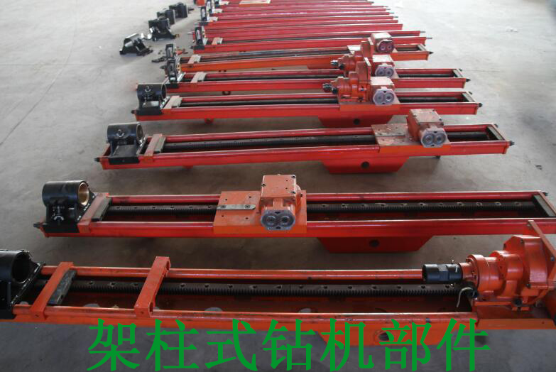 自《煤礦防治水》中明確規(guī)定“井下探放水應(yīng)當(dāng)使用探放水鉆機(jī)”以來,煤礦基本都配備探水鉆機(jī)。前些年流行的液壓坑道鉆機(jī)系列比較好用,扭矩大效率高,但弊端這類鉆機(jī)較為笨重,巷道內(nèi)搬運(yùn)耗時(shí)費(fèi)力。架柱式鉆機(jī)結(jié)構(gòu)緊湊,機(jī)型小巧,尤其是氣動(dòng)架柱式鉆機(jī),直接可以連接巷道內(nèi)高壓管道,動(dòng)力源方便。隨著研發(fā)生產(chǎn)技術(shù)的提高,架柱式探水鉆機(jī)打一二百米也沒問題,這能滿足大多數(shù)煤礦的需求,因此在甘肅平?jīng)?/span>眾多煤礦適用。