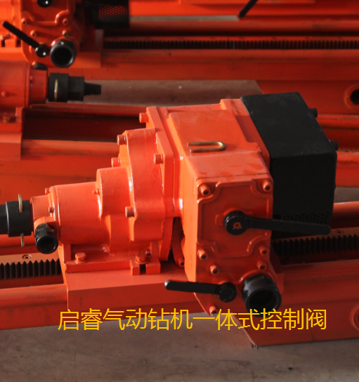 氣動架柱式鉆機采用分組式布局,整機由回轉(zhuǎn)動力總成、導(dǎo)軌總成、立柱總成、注油器總成四大部分組成。整體結(jié)構(gòu)簡單,穩(wěn)定性好,牢固可靠。各個部分組裝拆卸方便,分體搬運輕巧省力。鉆機運行操作通過換向閥總成控制完成,換向閥總成由閥體和兩個閥芯、手柄組成。操作兩手柄可實現(xiàn)鉆桿的正反轉(zhuǎn)和動力總成的前進和后退。鉆機除調(diào)整角度外,推進、旋轉(zhuǎn)通過操作手柄單獨控制,正常操作只需一人即可完成;極大的提高勞動效率,節(jié)省勞動強度和時間。